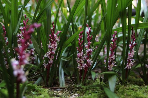 中庭の吉祥草が淡い紅紫色の可憐な花を咲かせています。 吉祥草の花が咲くと、良いことが起きるという言い伝えがあります。