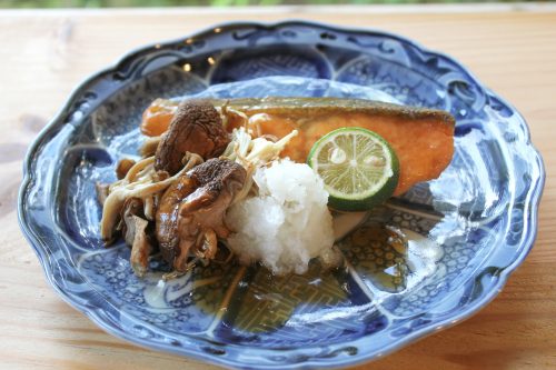 メインの焼サーモンおろしポン酢は、脂ののった秋の味覚を堪能していただけます。