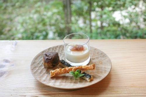 甘味は、いちじくジャムをのせたレモンのブラマンジェ、イチジクのフィナンシェ、黒ゴマのスティックパイです。